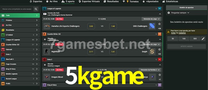 O 5kgame oferece uma grande seleção de opções de apostas em e-sports com probabilidades competitivas
